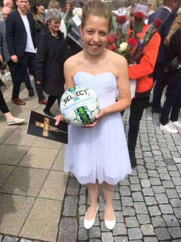 Maria og Leif var traditionen tro rundt med en bold til konfirmanderne. Stort tillykke, vi ses til træning.